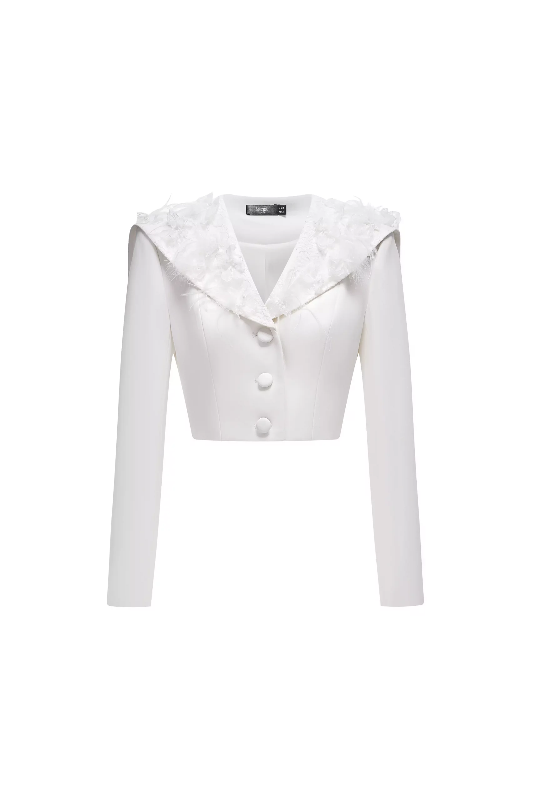 Textured Feather Off-Shoulder Crop Top in Ivory White