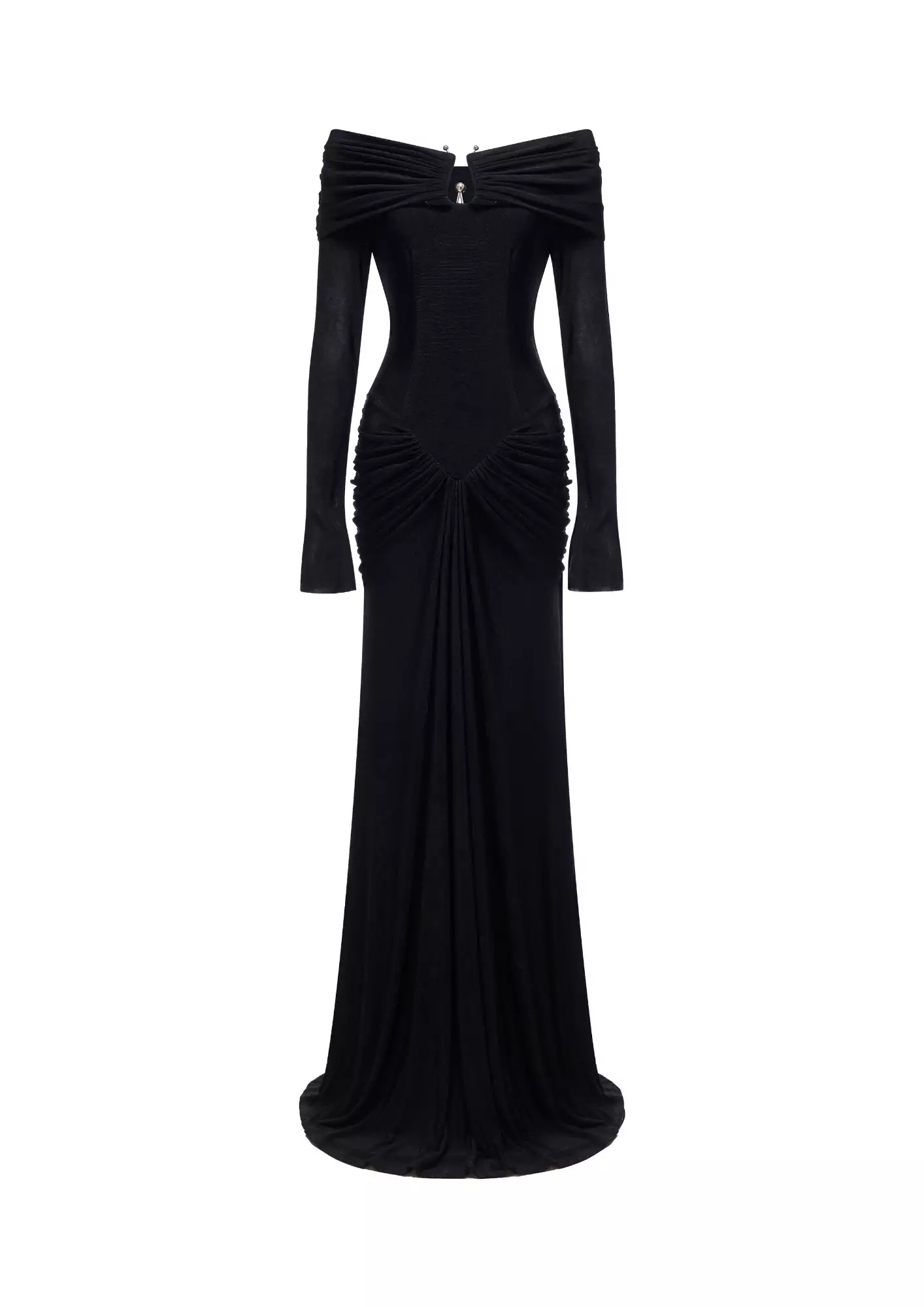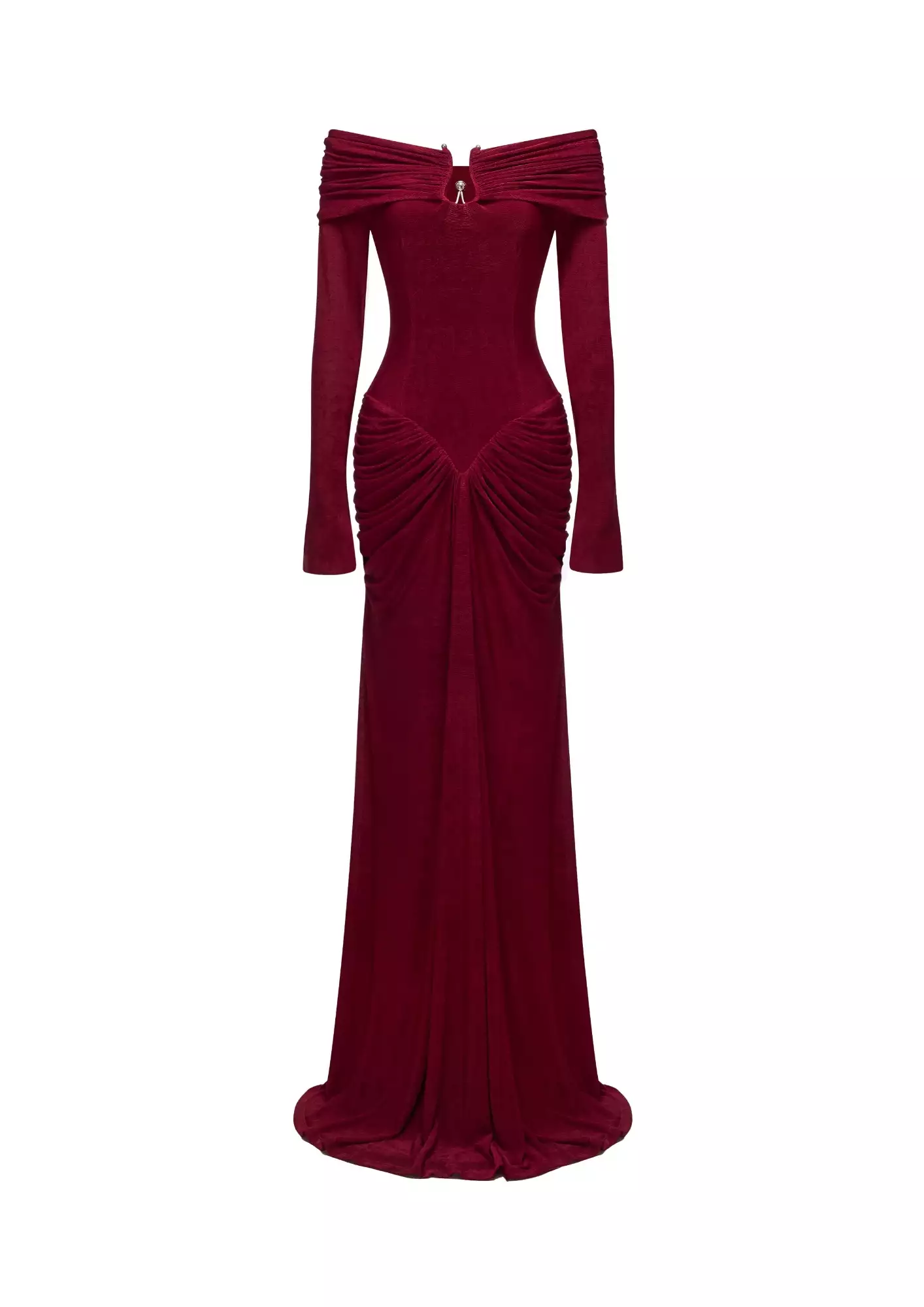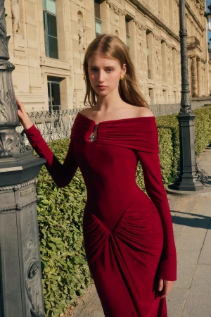 Ruched Velvet Off-Shoulder Dress in White